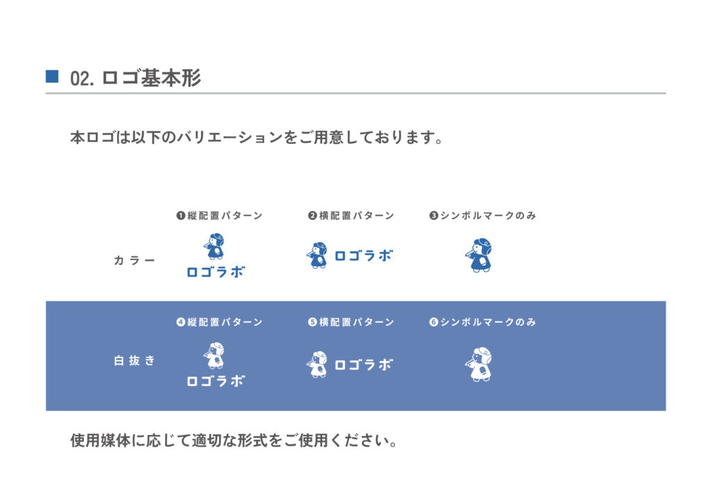 4. 展開設計:縦横・シンボルのみ・白抜き等の運用パターン